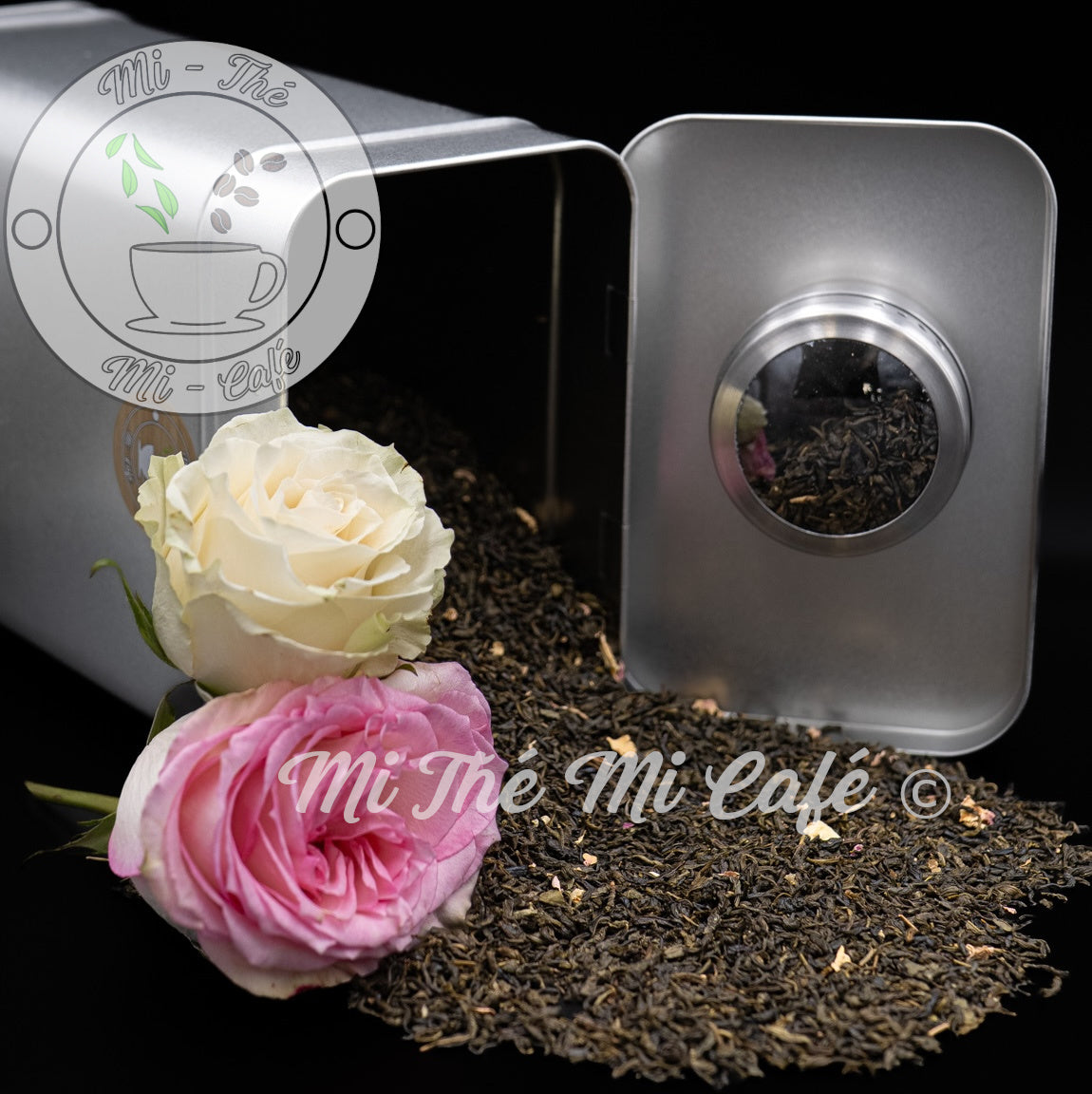 Thé vert aux roses Anglaise. Un arôme de rose naturel tout simplement exceptionnel. Un nez poudré et intense sur un thé vert Chunmee.