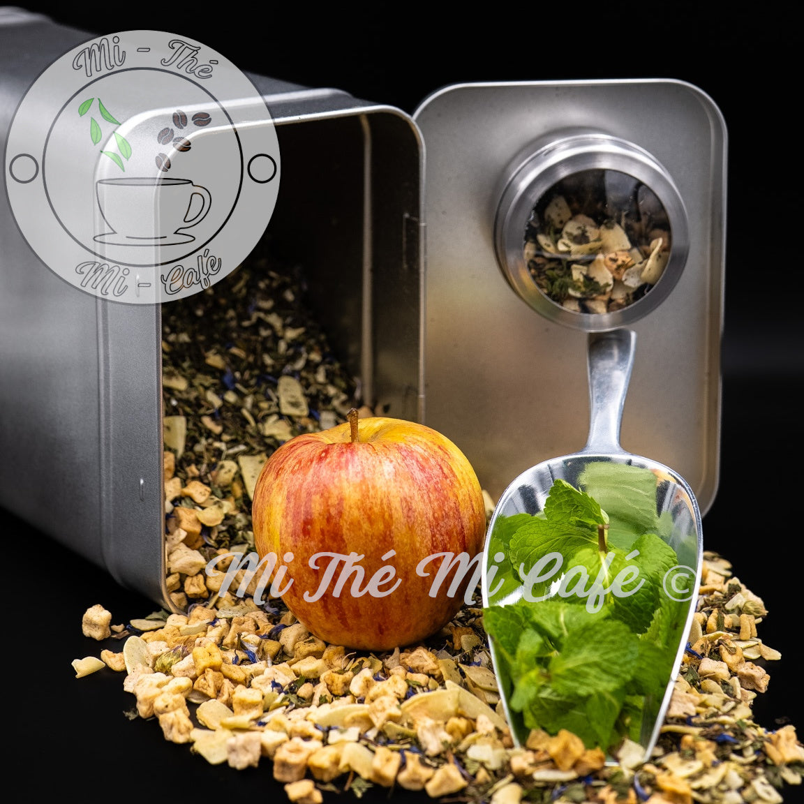 Cette infusion de cubes de pomme, de coco et de ses 3 variétés de menthe vous désaltérera tout au long de l'année.
