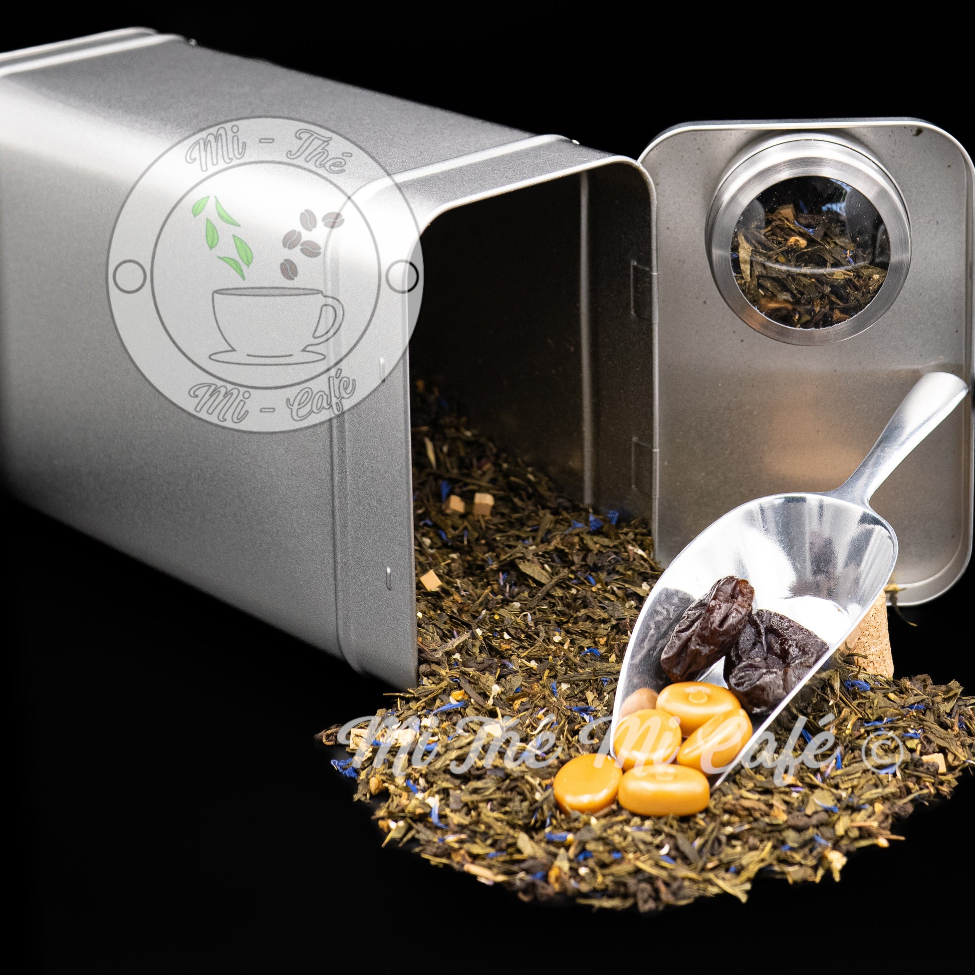 Thé vert gourmand où la saveur de la prune est associée à une saveur biscuitée.