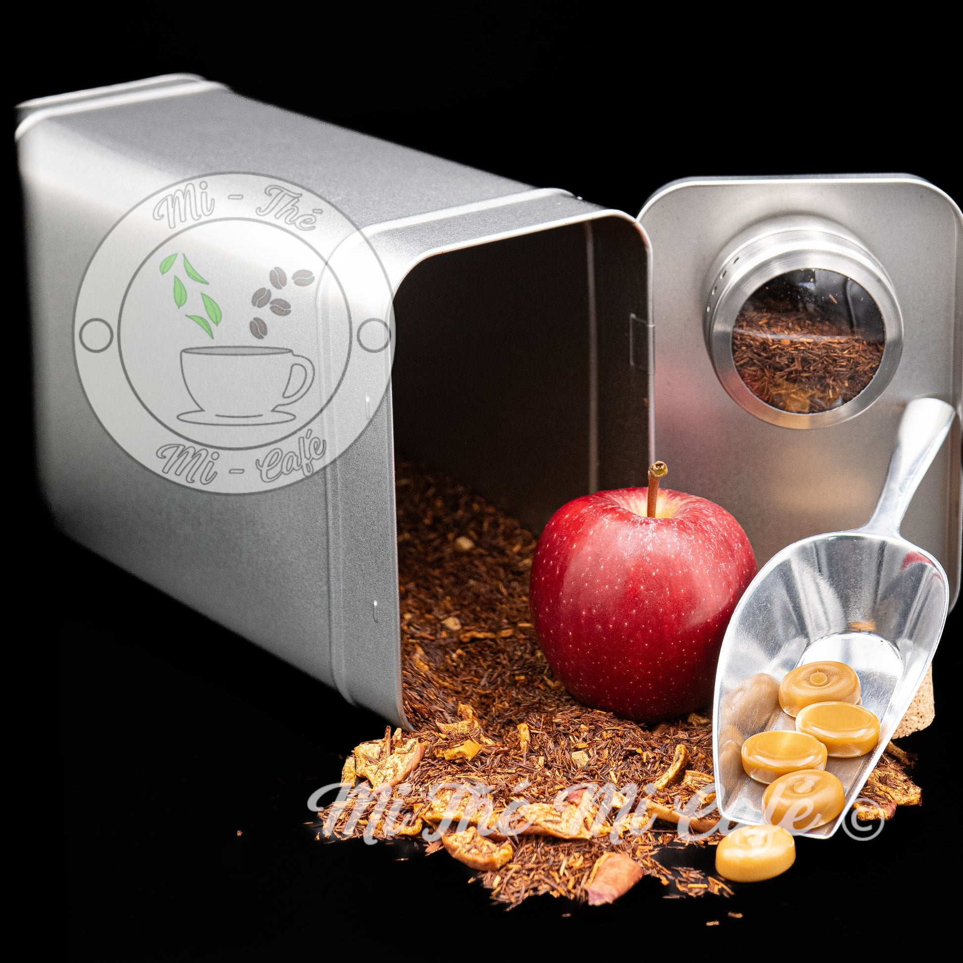 Rooibos à la pomme et au caramel au beurre salé. Doux, sucré et savoureux...Croquez dans une pomme tiède enrobé d’un coulis de caramel au beurre salé. Ce rooibos fait deviner le goût d’une pâtisserie.