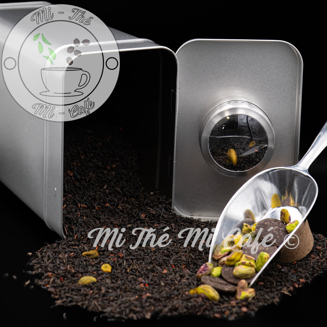 Un thé expressif aux arômes résolument modernes. Une truffe pralinée fourrée d'un cœur de pistache.