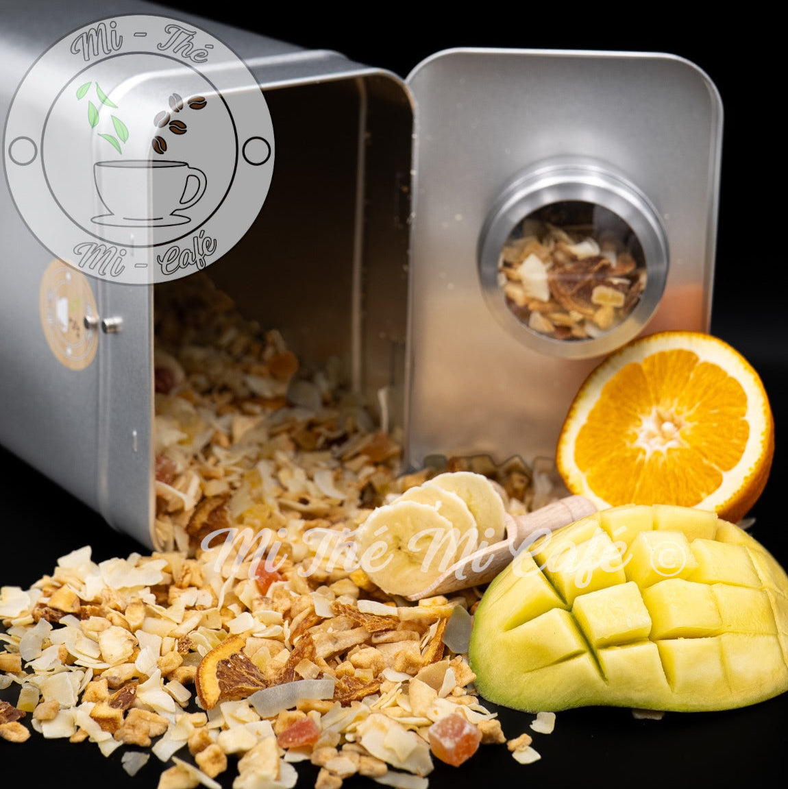 Profondément exotique ! Chips de noix de coco, fruits exotiques et pointe de chantilly !
